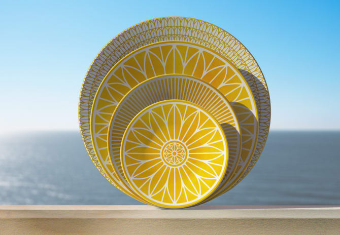 Malmaison Riviera reimagines the refined, timeless elegance of Christofle’s Malmaison collections with a sunlit aura. The Malmaison Riviera collection features around fifteen pieces in fine porcelain, ranging from plates, presentation platters, bowls, mugs, and tea and coffee cups to cake service pieces. Each piece captures the Mediterranean light, enhanced by a delicate vibrant and natural watercolor yellow, designed to illuminate the table. Discover Malmaison Riviera Collection.