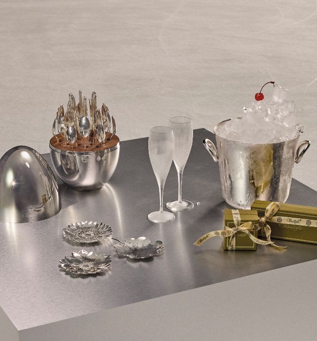 Christofle’s collections celebrate the art of holiday gatherings with effortless radiance. This season, add the iconic Vertigo collection, defined by its bold rings and modern silhouette, which brings a touch of playful sophistication to every festive table. Pair with the MOOD's silver-plated flatware to create a sense of ease at the table while adding warmth, brilliance, and an elevated vibe to your celebrations.
