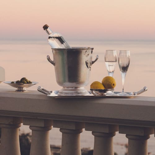 Champagne and ice buckets, elegant bowls and aperitif accessories come together to enhance the elegance of every gathering.