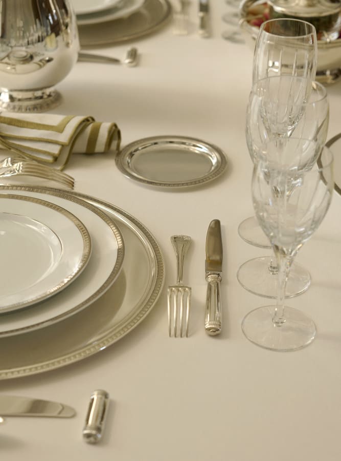 Malmaison, the Empire collection from Christofle, features everything from silver cutlery to decorative objects. Objects, such as the iconic candelabra, picture frames, and the elegant champagne buckets, display the collections inimitable style and are present throughout all categories of the Art of the table.