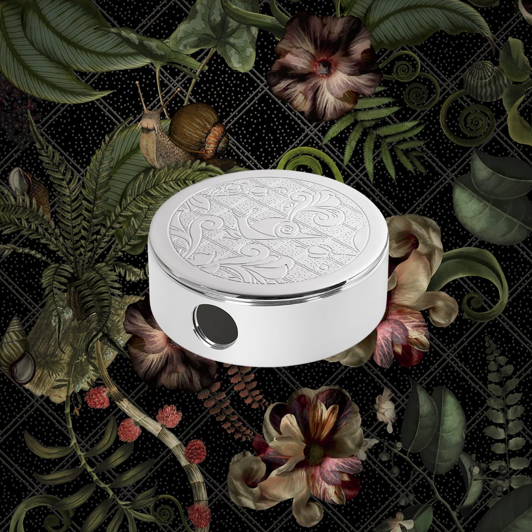 The seven silver-plated pieces presented today illustrate these seven deadly sins, each of which is also symbolized by an animal. Each animal is invited to enter the fantastical decoration of the luxuriant garden, created and hand-designed by Marcel Wanders studio, featuring a wealth of arabesques and sensual volutes.