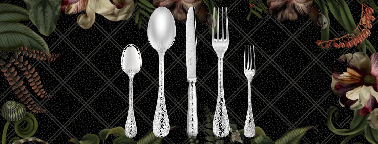 Jardin d’Eden adds an intriguing allure to our most coveted flatware sets and serving cutlery.