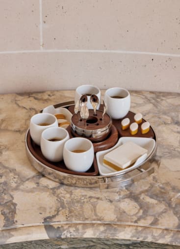 Enjoy your sweet and savory treats around a table enhanced by Christofle pieces.