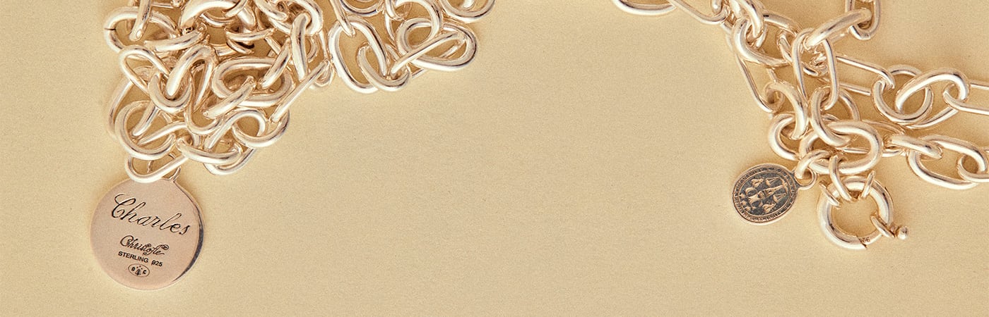Endlessly adaptable to each individual’s taste, this sterling silver range comprises a necklace and bracelet with large links, and five medallions,