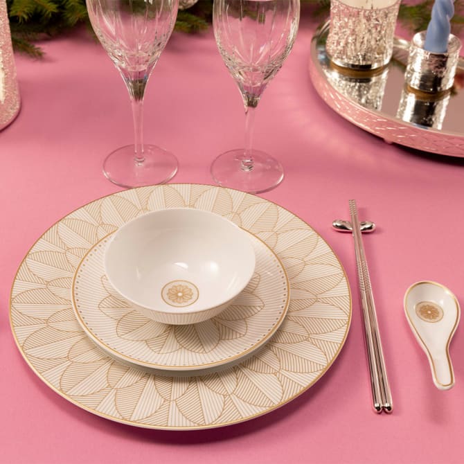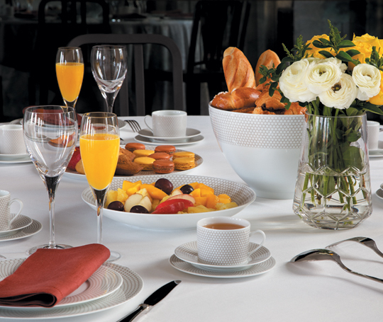 Malmaison is named after the castle which was the favorite holiday resort of the Emperor Napoleon Bonaparte and the Empress Josephine. Resolutely chic, its ornaments, openwork leaves and symmetry of the decorations, give a statutory imprint to the table and to all the moments that live there.