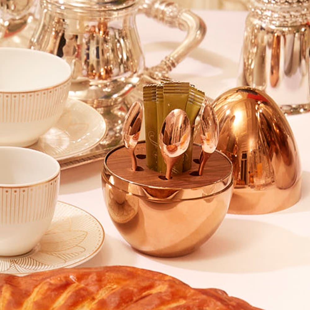 The tea spoon, modern and refined, is perfect for the end of your meal and can be used in breakfast cups or mugs.