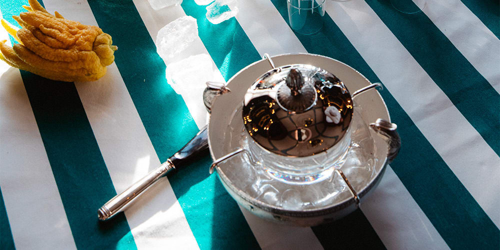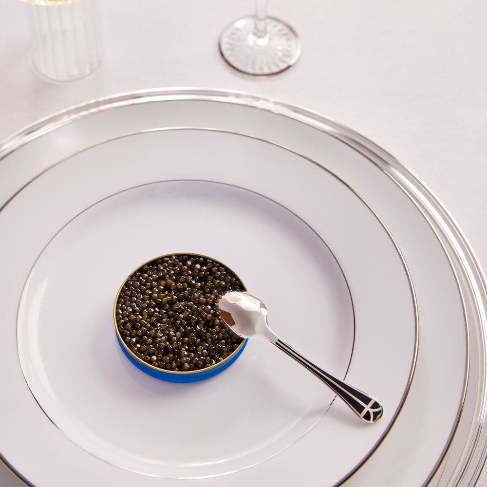The caviar spoon, generally in mother-of-pearl to preserve the delicate taste of the caviar, accompanies each bite of caviar.