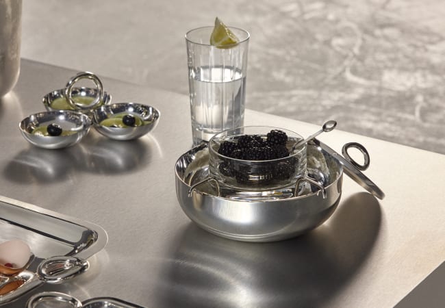 Juxtaposés en centres de tables, les variations de la collection MOOD by Christofle, à la fois objets de désir et emblèmes du luxe fonctionnel, illuminent les fêtes de leurs mille reflets argentés. Quant à elle, la collection Vertigo déploie ses formes sculpturales sur la table de fête.
