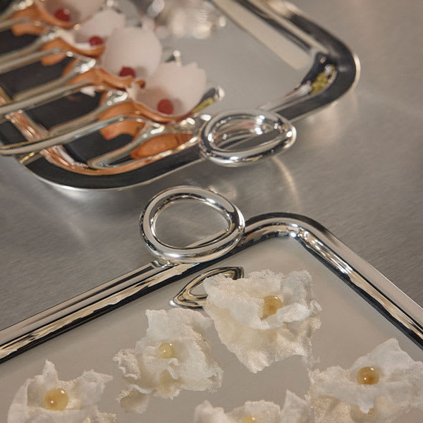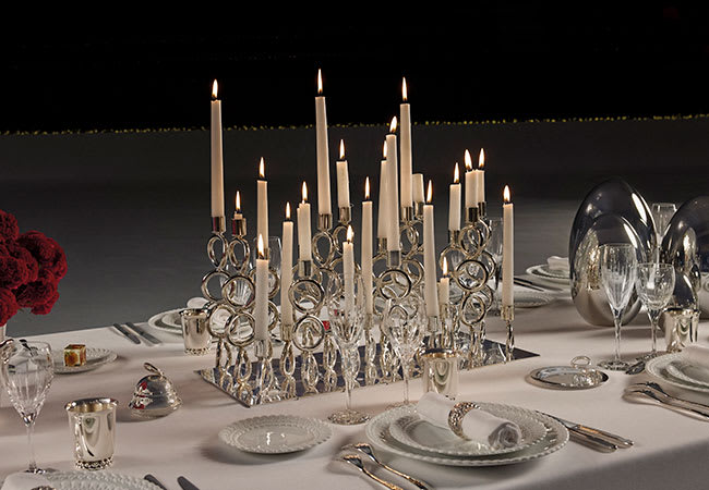 Juxtaposés en centres de tables, les variations de la collection MOOD by Christofle, à la fois objets de désir et emblèmes du luxe fonctionnel, illuminent les fêtes de leurs mille reflets argentés. Quant à elle, la collection Vertigo déploie ses formes sculpturales sur la table de fête.
