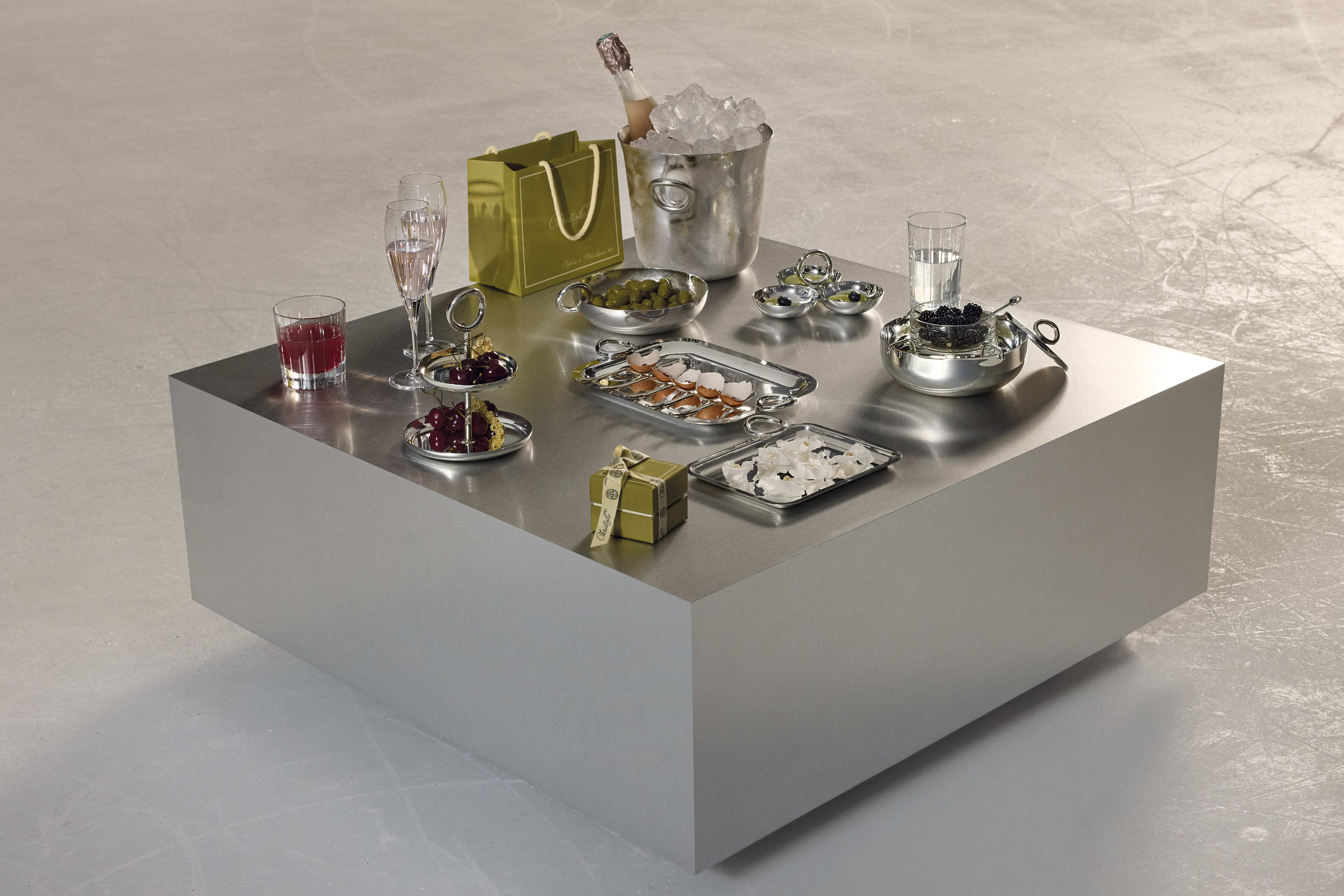 Une paire de dessous de verre en acier argenté gravé complète cette édition limitée, invitant la magie jusqu’à la table des fêtes. Des pièces précieuses et délicates à offrir ou à collectionner.