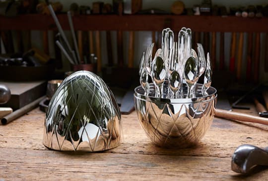 Pour compléter la collection MOOD, Christofle a développé le MOOD Haute Orfèvrerie. Son credo est de réaliser l'exceptionnel, tant pour ses couverts que pour le majestueux écrin qui les abrite.