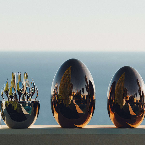 L'écrin ovoïde en acier miroir, au gable réconfortant et élégant, n'est alors plus seulement un objet utile, il devient un élément de décoration graphique et contemporain que l'on affiche fièrement. Que se passe-t-il lorsque la table n'est plus dressée ?