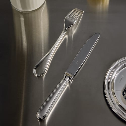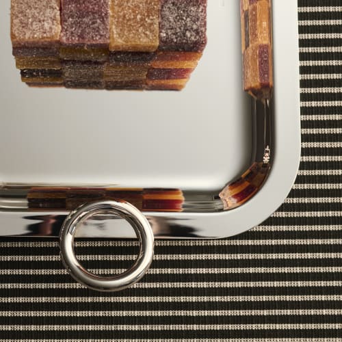 La lettre orne la timbale de manière monumentale et donne une toute nouvelle contemporanéité à cet objet traditionnel.