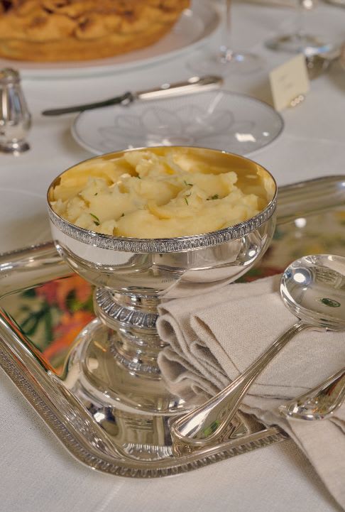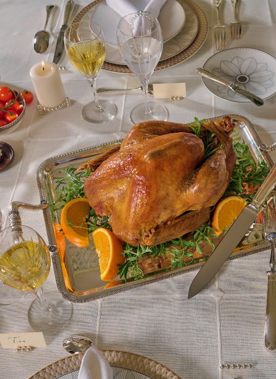 For Thanksgiving, their dining hall comes alive with seasonal charm: a golden turkey rests on a Malmaison tray,