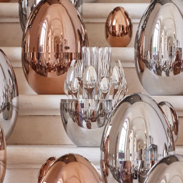 Juxtaposés en centres de tables, les variations de la collection MOOD by Christofle, à la fois objets de désir et emblèmes du luxe fonctionnel, illuminent les fêtes de leurs mille reflets argentés. Quant à elle, la collection Vertigo déploie ses formes sculpturales sur la table de fête.