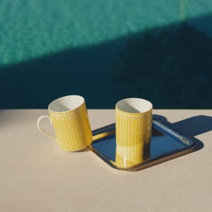 Cette collection déroule le fil d’une poésie ensoleillée. Composée d’une quinzaine de pièces en porcelaine fine, chacune dispose de son propre décor tracé à main levée. L’ornement emplit les différentes assiettes, qui déclinées et associées entre elles, créent un tableau vibrant. Chaque motif décoratif se répond avec rythme et symétrie.