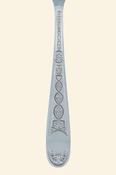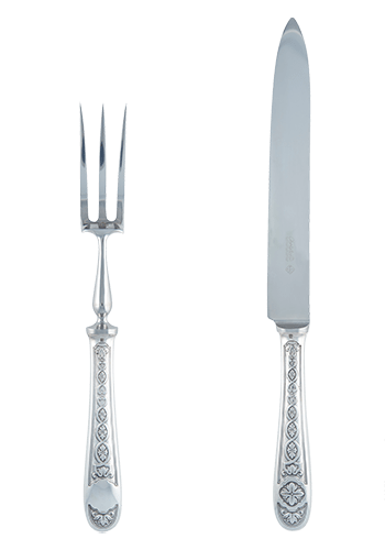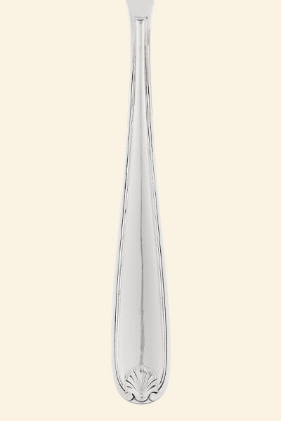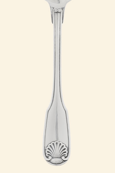 Ce modèle réinterprète en effet le motif très classique de la coquille, apposé sur un manche à la forme moderne.
