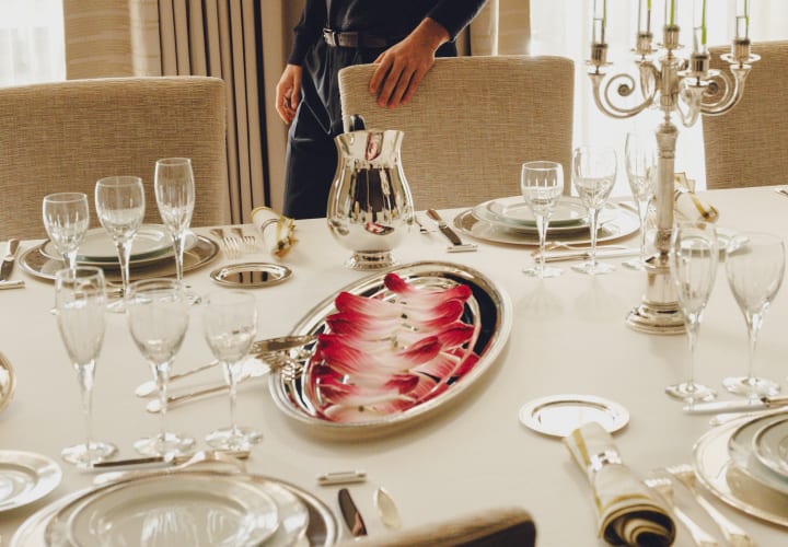 De délicates tasses à café pour le petit-déjeuner, de jolies assiettes en porcelaine pour le dîner ou un centre de table agrémenté de fleurs coupées pour égayer la soirée. Des verres en cristal pour déguster un millésime savamment présenté dans une carafe à décanter. Des plateaux en argent, de toutes les formes et de toutes les tailles… L’art de la table ne s’improvise pas. Mais, maîtrisé, il distingue même le plus simple des repas et se transcende en Art du partage.