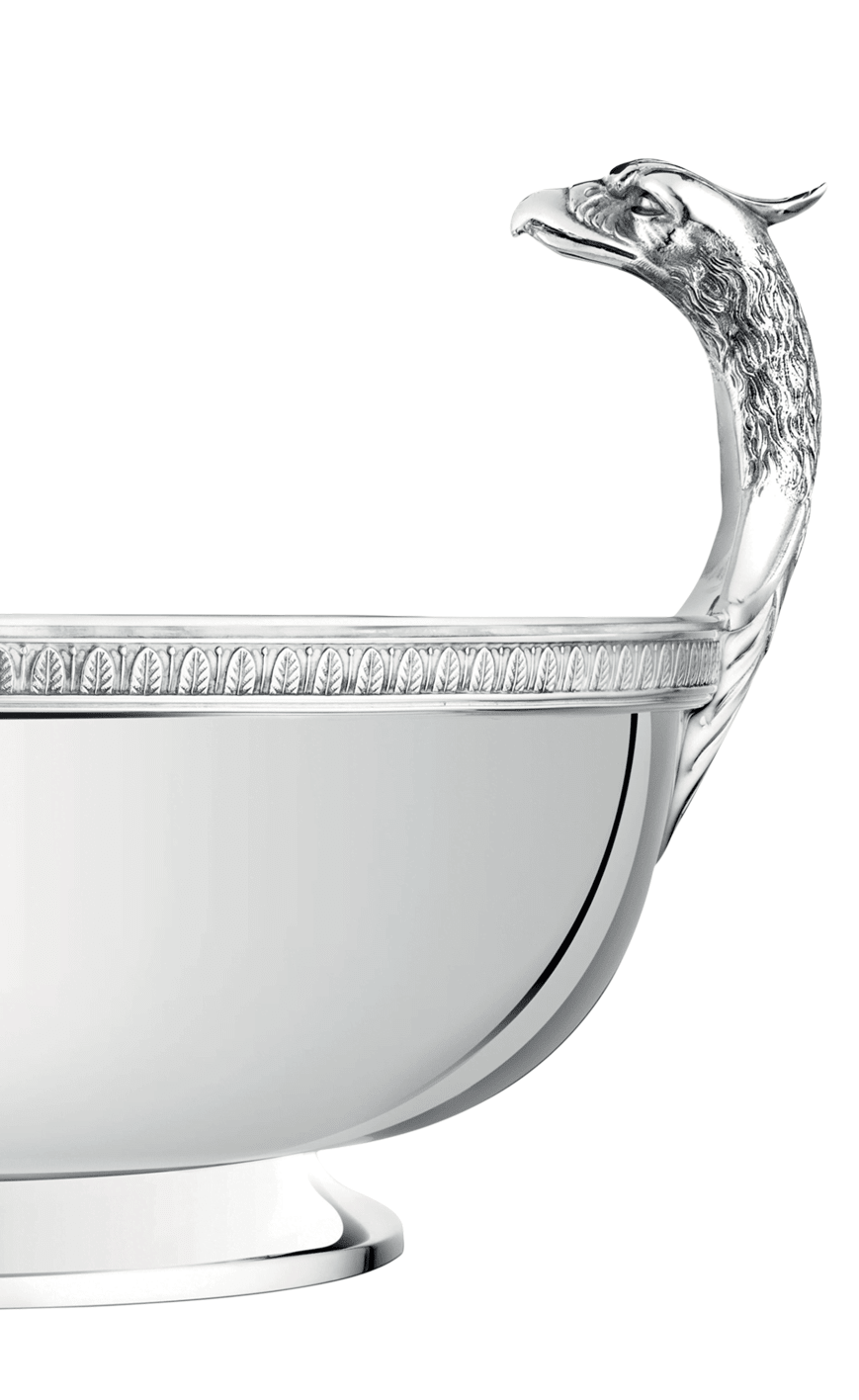 In the collection of table accessories, such as the champagne bucket, evocations of the eagle recall memories of Ancient Rome before becoming the imperial emblem. The eagle is also the symbol of the powerful Jupiter, often associated with power and military victories. This symbol, used on many pieces of the collection, gave birth to certain emblematic pieces such as the Malmaison saucer or the centrepiece, which are still among the most appreciated today.