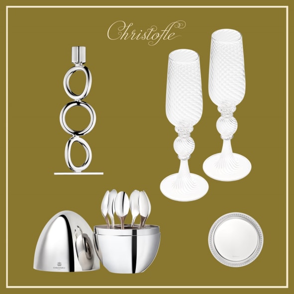 Instead of giving each other a gift, why not choosing a joint gift and opt for a Valentine's Day gift for a couple? With this "twin set" spirit in mind, Christofle proposes a selection of special gifts for couples: silver salt and pepper shakers, double photo frames, coasters... It's better for two!