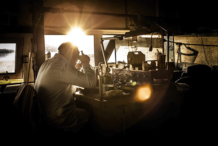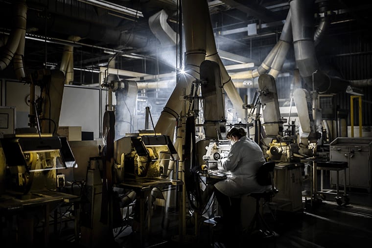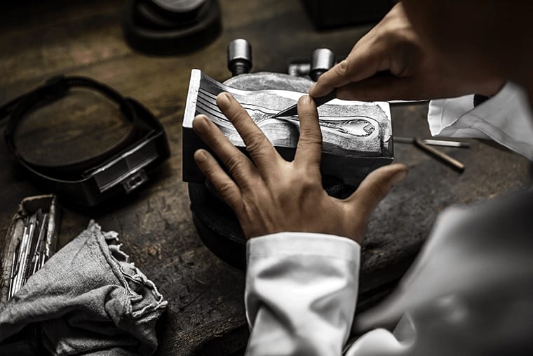Maison Christofle entirely uses handmade manufacturing. The precious trades of spinning, embossing, carving, engraving, perpetuated by its craftsmen immortalize the qualities of elegance and excellence. It is this irreplaceable know-how perpetuated by highly qualified craftsmen transmitted from teacher to student that constitutes the living heritage of Christofle. True "Living Treasures", the Master Goldsmiths are the guardians of the sustainability and quality of Christofle know-how.