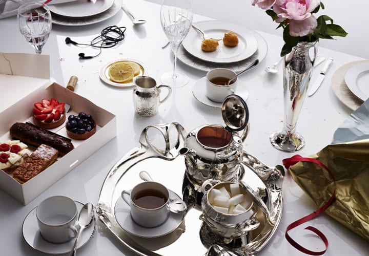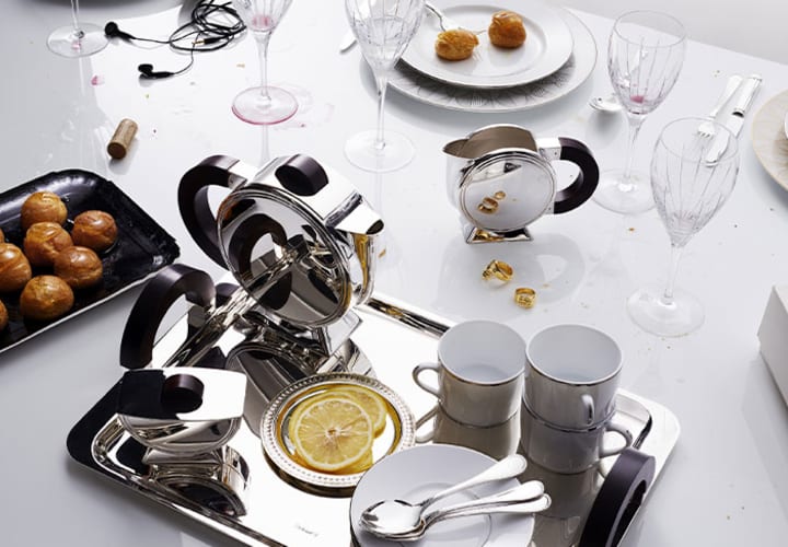 Delicate coffee cups for breakfast, elegant porcelain plates for dinner, or a centerpiece adorned with fresh flowers to brighten the evening. Crystal glasses to savor a fine vintage, beautifully served in a decanter. Silver trays, in all shapes and sizes… The art of the table is no improvisation. But when mastered, it elevates even the simplest meal — and becomes an Art of sharing.
