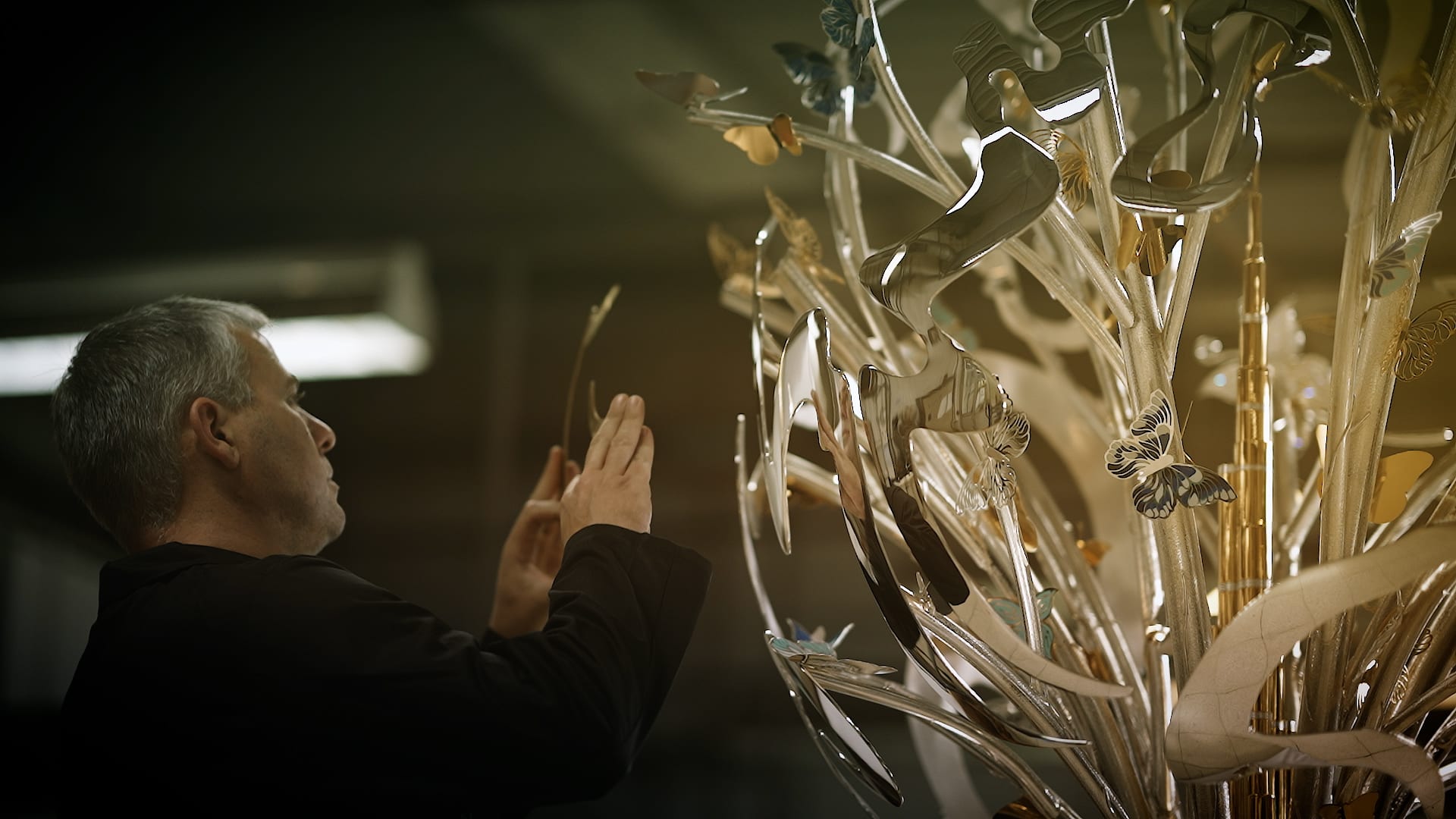 The tree of life, which will have required 750 hours of work in the Christofle Haute Orfèvrerie workshops, will be exhibited in Dubai from 1 October 2021 to 31 March 2022.