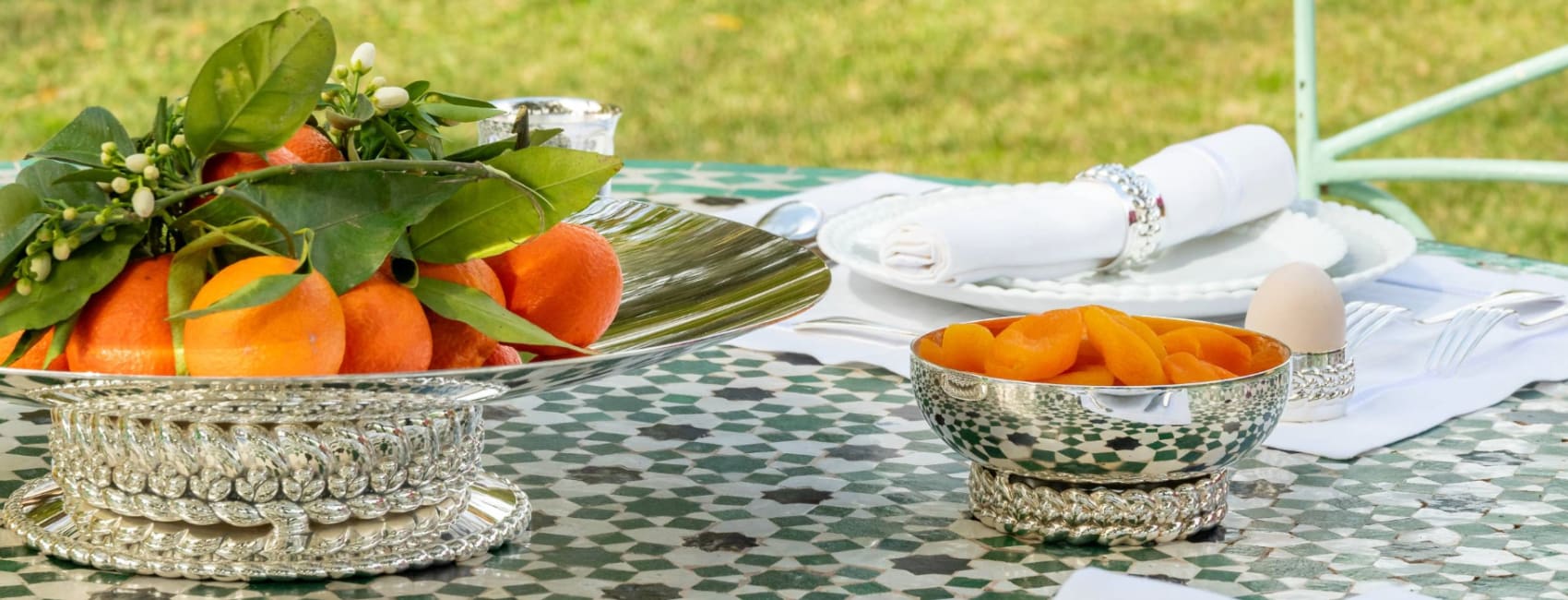 A silver plated tray is always a good idea to present your food with elegance. You can accompany it with silver plated serving pieces.