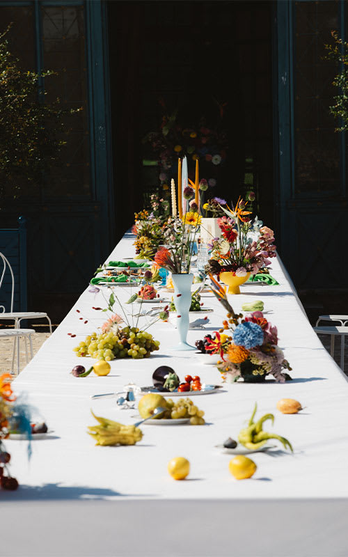 Discover the art of sharing through beautiful pieces to set your reception table and for outdoor gatherings.