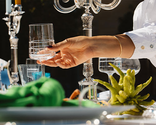 Elevate your gatherings with exquisite cocktails and mocktails crafted using our Oh Christofle shaker. Pair your creations with our Graphik glassware, and there's no need for additional table decorations. The stunning design of these glasses ensures your table stands out effortlessly. Just as crystal glass holds a central place in the art of reception, our Graphik glasses bring a touch of elegance and sophistication to your settings.