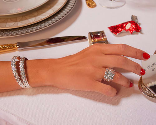 Why not consider the gift of jewelry for men? The Graphik collection, featuring a pendant, bracelet, and ring, cuts a masculine line with a bold effect. He’ll be delighted when you surprise him with such an unexpected keepsake.