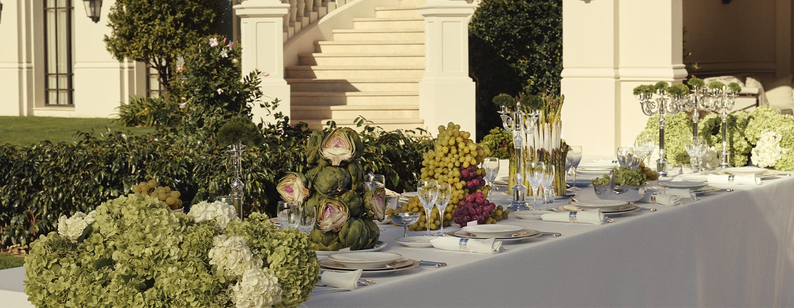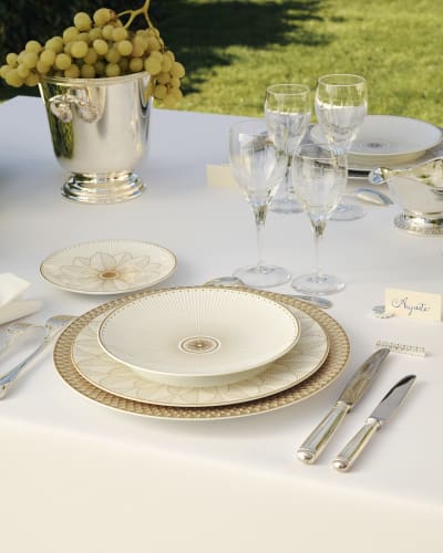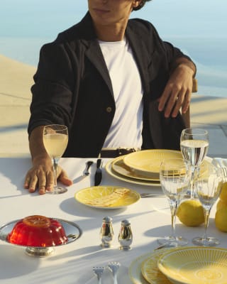 There are endless possibilities to set your wedding table. Whether it is a stunning party set with a sumptuous oval dining table and a majestic view of the Big Blue, a head back to the beach this time for a more intimate celebration, both chic and casual, or a quiet moment just for two while watching the sun disappear beneath the sea... Christofle shows up at every festivity!