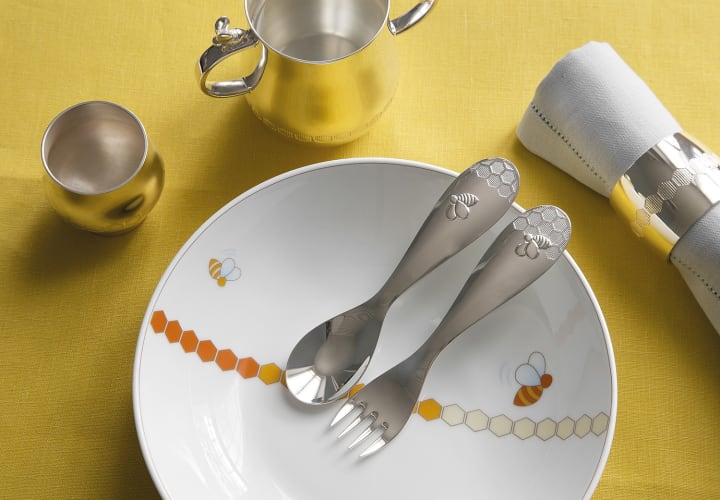 For every tasty moments, a selection of silver-plated cutlery, plates, and accessories transforms mealtime for little ones into a refined ritual. Combining practicality and elegance, these pieces accompany their first culinary discoveries while creating memories to cherish and pass on.