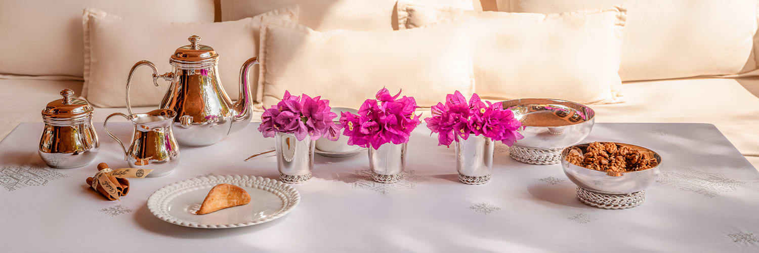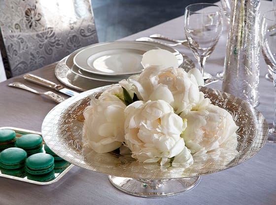 Delicate coffee cups for breakfast, pretty porcelain plates for dinner or a centerpiece decorated with cut flowers to brighten up the evening. Crystal glasses to enjoy a vintage wine in a decanter. Silver trays of all shapes and sizes... The art of the table cannot be improvised. But, mastered, it distinguishes even the simplest of meals and transcends into the art of sharing.