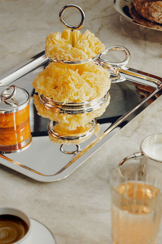Present your sweet and salty delicacies on silver-plated trays and pastry stands and serve them with refined serving flatware.