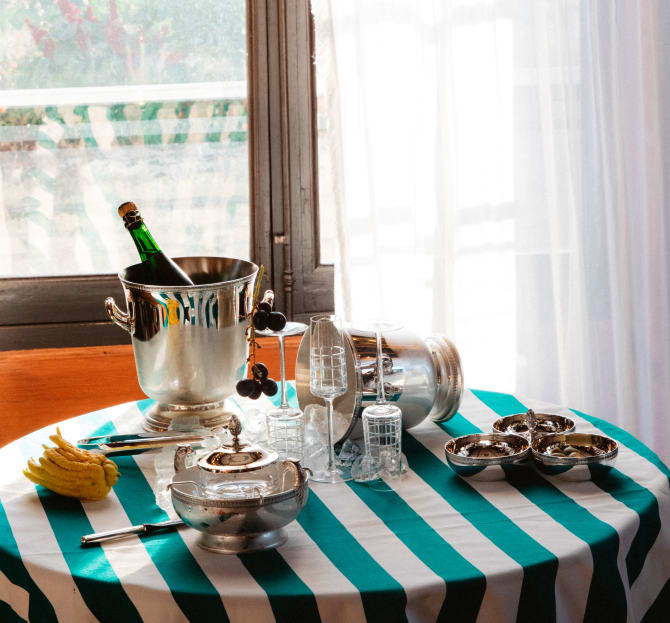 オー・ド・クリストフルの作品は、アウトドアを楽しく演出できるアイテムが揃っています。ボートのデッキでロングドリンクをカクテルスティラーで楽しんだり、テラスでの夏の食事や、庭でのカクテルパーティでも、そのデザイン性と機能を実感いただけます。