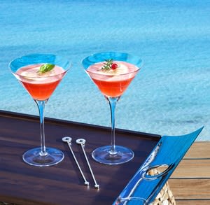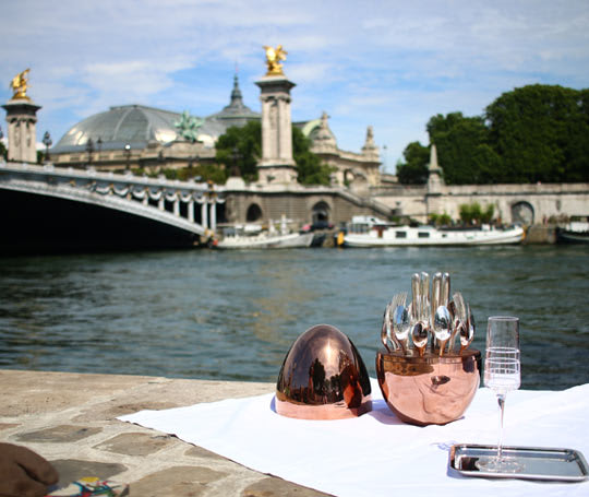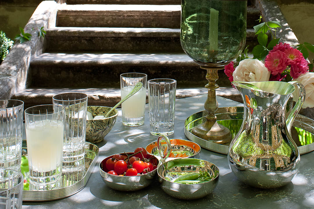 燦々と降り注ぐ太陽の光りに反射して煌めくクリストフルのシルバーコレクションがラグジュアリー空間を演出します。