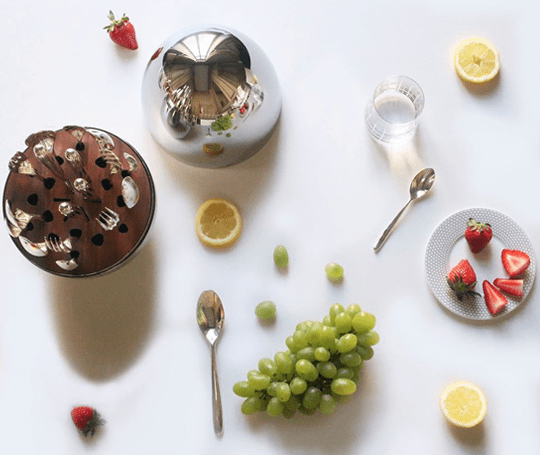 オーバルシェイプの輝くフォルムがまるでインテリアのオブジェのようなカトラリーセット。