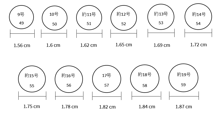 お持ちの指輪の直径を測っていただき、比較いただくことをお勧め致します。