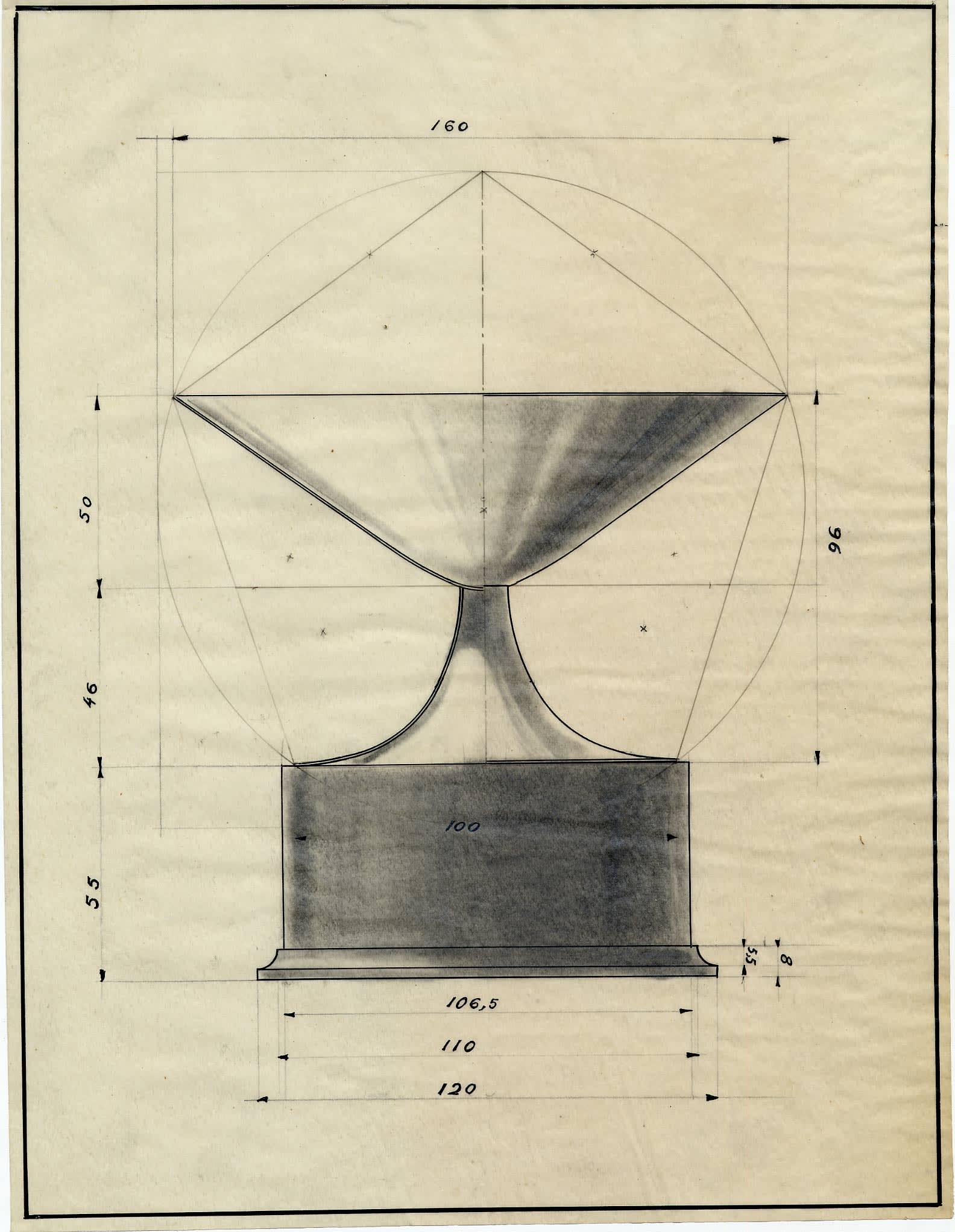 Coupe Bol d'or avec son tracé harmonique, vers 1943