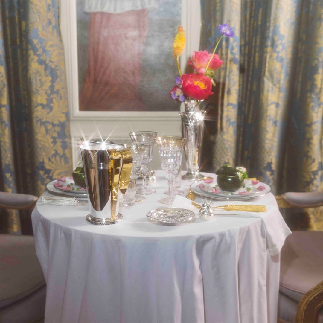 La composition et l'harmonie de votre table dépend de vos envies. Pour une table magnifiquement dressée, certains éléments sont essentiels : un centre de table, des plats en métal argenté, des pièces à servir ainsi que de délicats couverts.