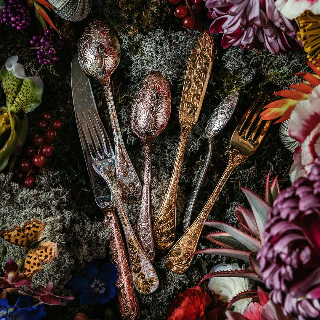 Finally, in addition to the current finishes in total gilding and partial gilding in yellow gold, Christofle offers three new finishes: total gilding in pink gold, partial gilding in pink gold and a new finish that shows all the know-how and expertise.