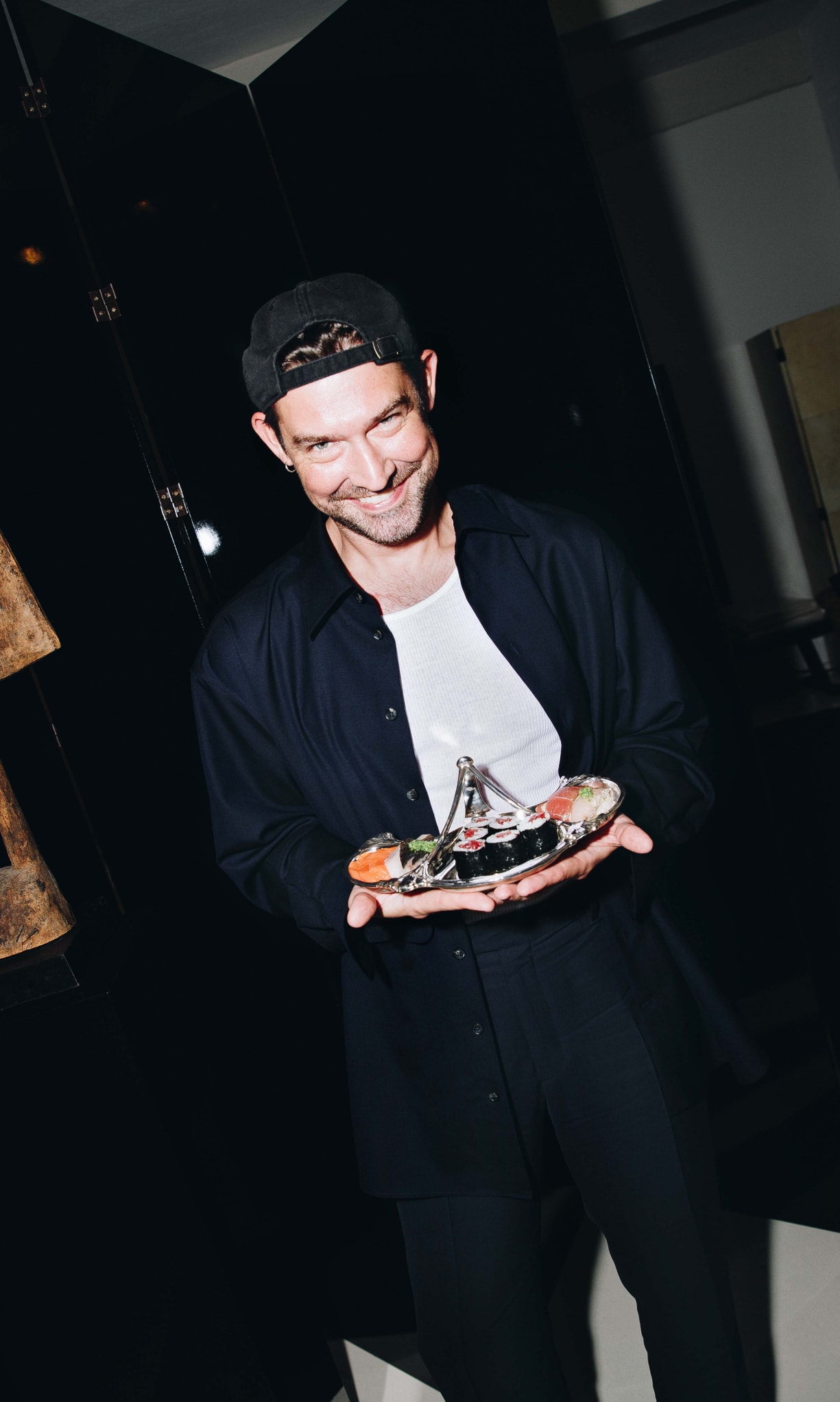Designer and gallerist Michael Bargo hosted a small but casually sophisticated sushi dinner with friends.