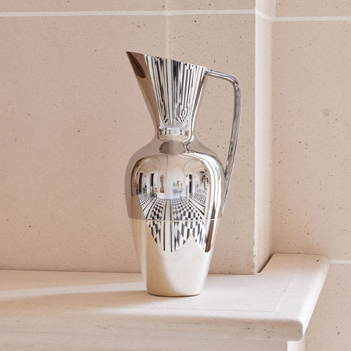 In the tradition of these great designers (Luc Lanel, Gio Ponti, Lino Sabbatini, Tapio Wirkkala, Andrée Putman, and Martin Szekely) who imagined the future of tableware for the Christofle maison over the decades, Studio Christofle created a new piece for this exhibition: the "Affinités" water pitcher.