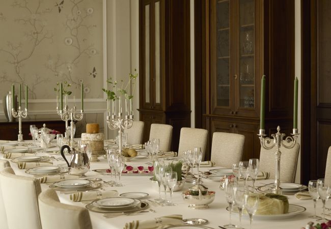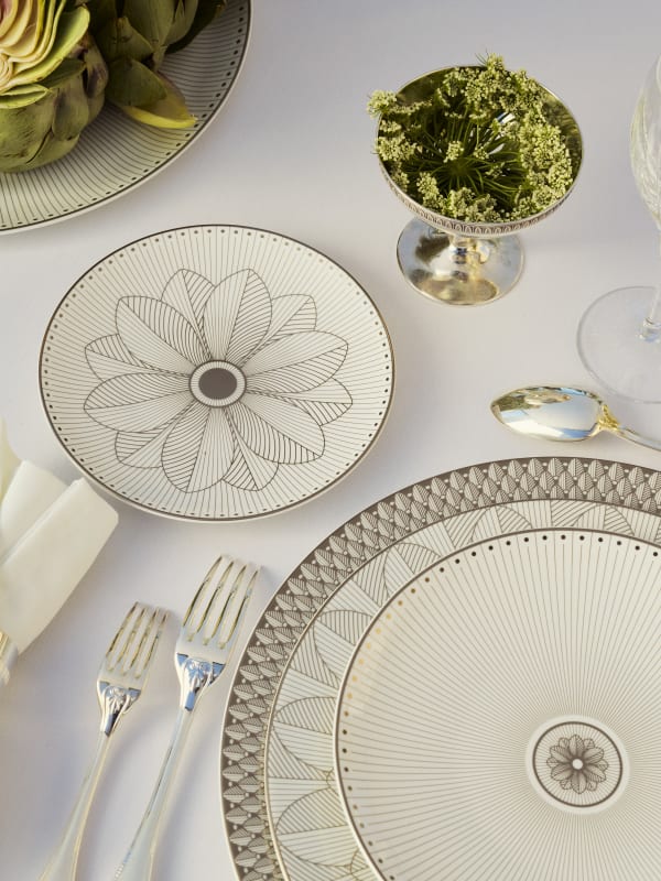 These new lines, available with gold or platinum finishes, also adorn tea and coffee sets, serving dishes, and table accessories. Malmaison Impériale pieces are designed to be mixed and matched, varying table settings and creating a harmonious, rhythmic composition on prestigious tables.