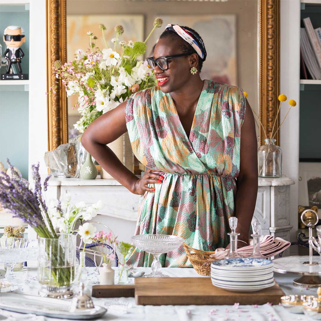Two years ago, Ajiri, an American living in Paris, merged her New York fashion experience and decorative arts studies to create Madame de la Maison. It is a lifestyle brand that embodies her love for entertaining and creating majestic gatherings. She developed a collection of linens and travels through France searching for antique tableware, while encouraging her audience to utilize beautiful pieces that brings daily joy. You can follower her decorative adventures at @madamedelamaison and catch glimpses of her travels with her family on @ajiriaki.