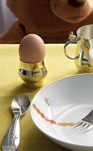 Our selection of baby cups, napkin rings and silver metal baby cutlery