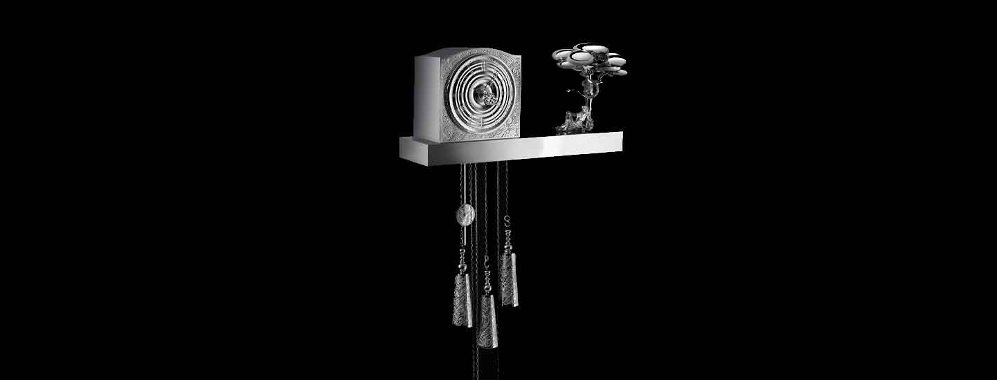 The fruit of 135 hours’ work and close collaboration between one of our master silversmiths, a highly skilled Meilleur Ouvrier de France craftsman, and an automaton maker, this unique piece pairs the master silversmith’s know-how (assembly, plating and polishing) with traditional clockmaking expertise. The mechanism allows you to tell the time, while bringing it to life. The Garden of Eden’s narrative world, creativity and know-how combine in this extraordinary object to be admired in amazement.