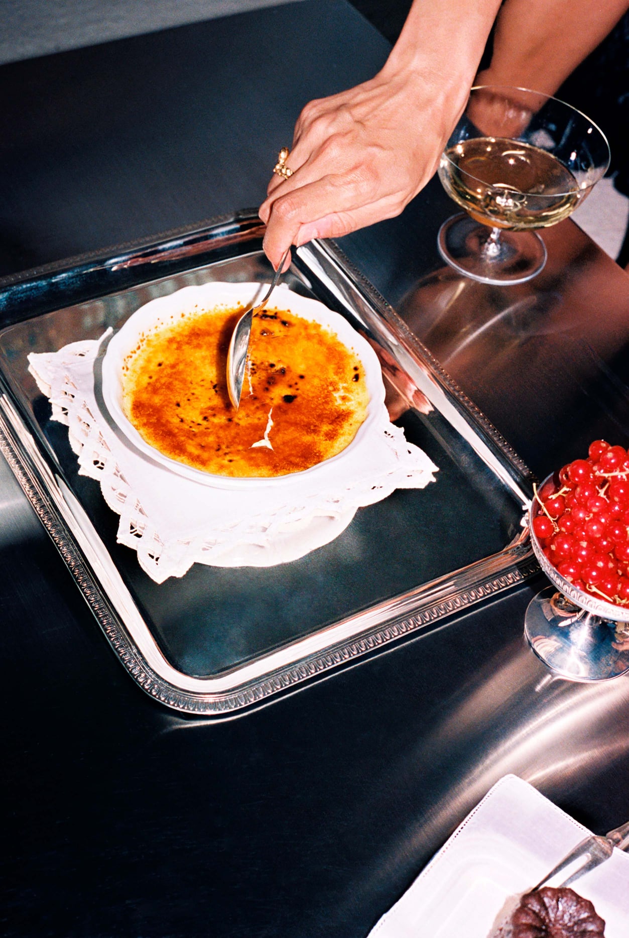 For an elegant lunch of smoked salmon, caviar, fennel salad, champagne, and crème brûlée, the couple opted for a mix of Christofle’s fanciful, Anémone Belle-Epoque collection, the Rococo formality of Marly flatware and the streamlined simplicity of Albi porcelain and Iriana crystal.