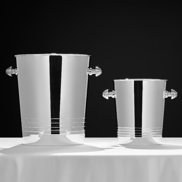 The collection offers two elegant barware pieces: the Silver-Plated Ice Bucket and the Silver-Plated Champagne Bucket. These pieces are designed to elevate any reception with their sleek, 1930s-inspired lines and impeccable craftsmanship.